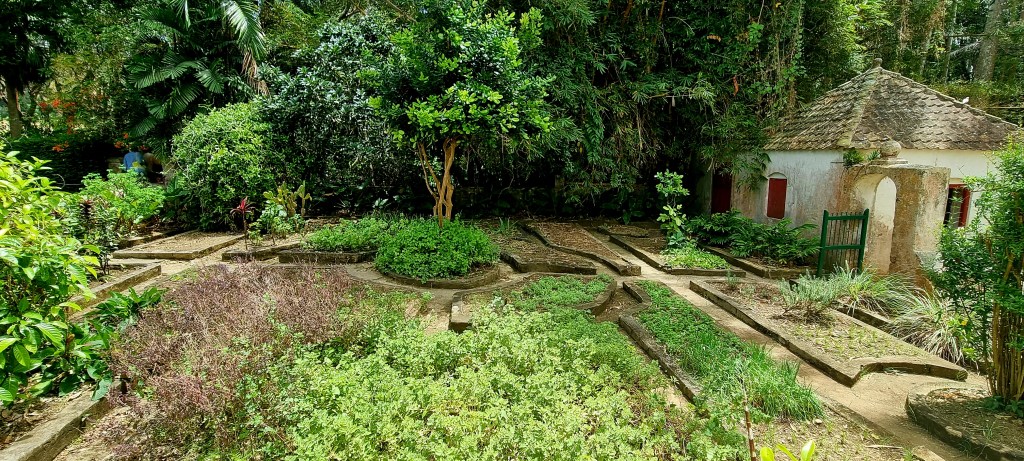 Looking through the window, you could see the herb garden, which is set out in a traditional English pattern. It contains an assortment of peppers used to make the plantations own pepper jelly.