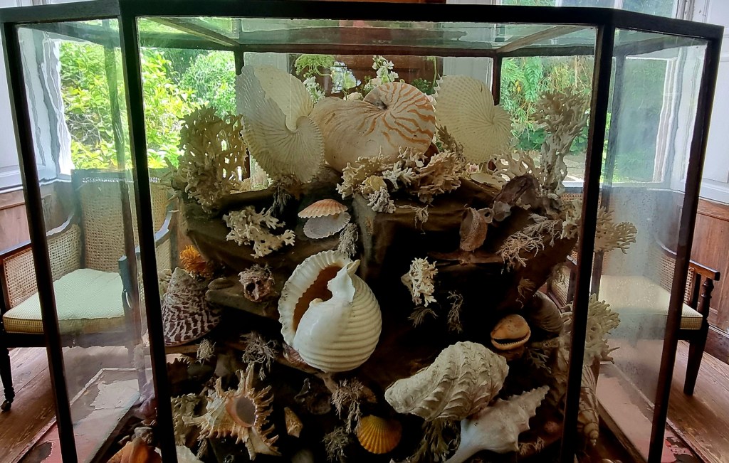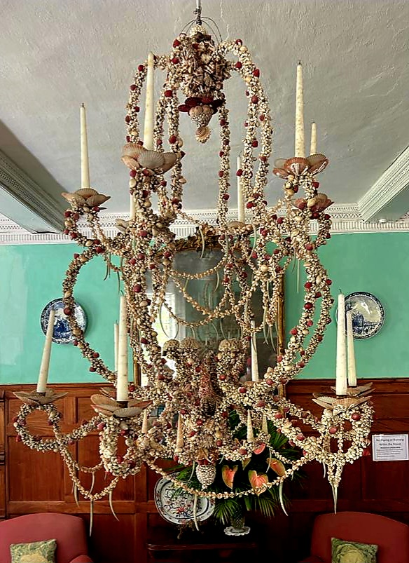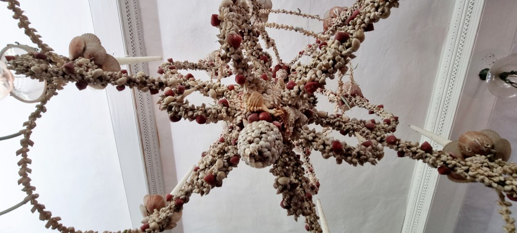 The first room we came to was the drawing room. Here, they have an amazing french chandelier from the 1800s,made out of shells and coral.