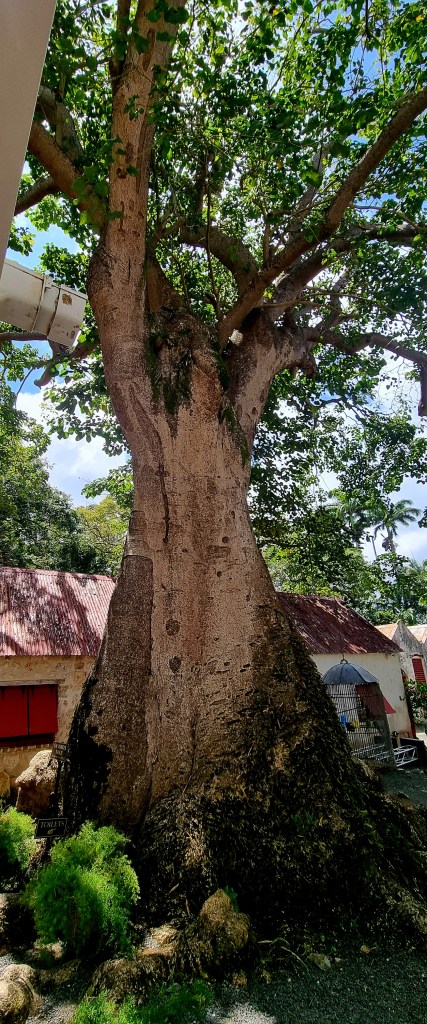 In the courtyard, there is a Sandbox Tree, which is over 400 years old. This is an evergreen that is indigenous to the Caribbean, and it has tiny thorns all over its bark – it has the nickname of ‘monkey no-climb’.