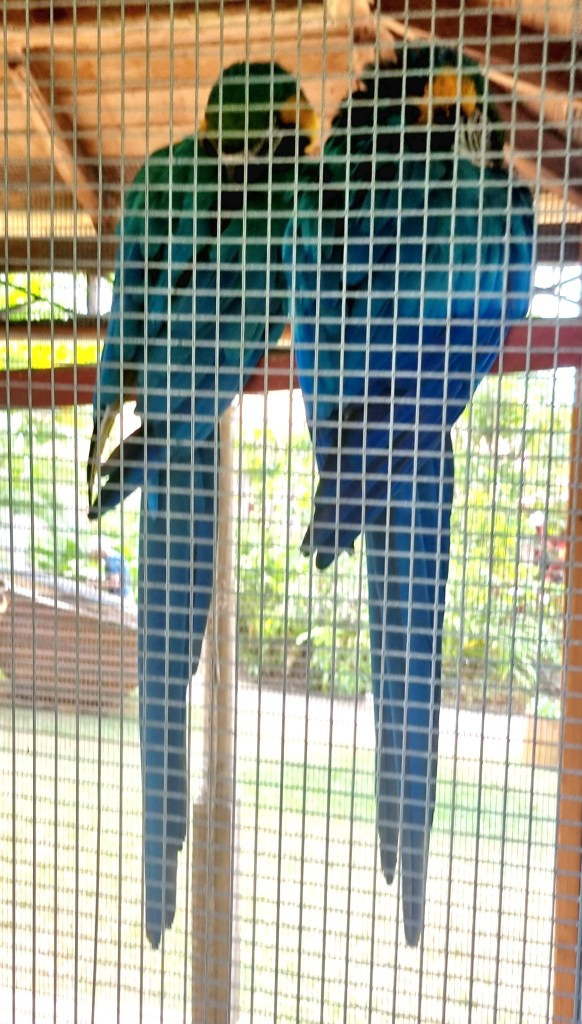On the way to taste some rum, we passed the cotton plants and also some macaws.