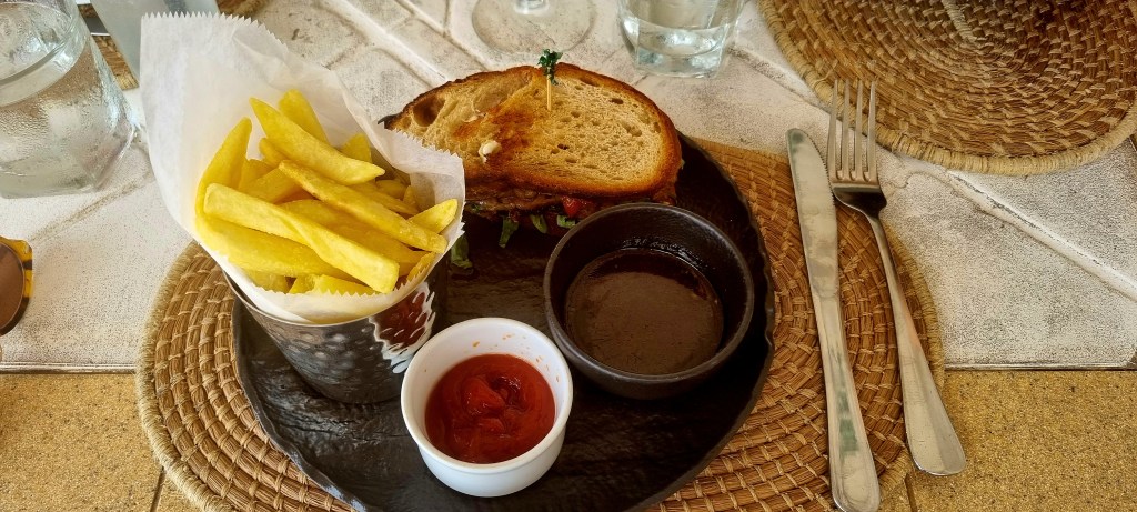 It was soon time for lunch. I had a delicious steak sandwich with blue cheese.