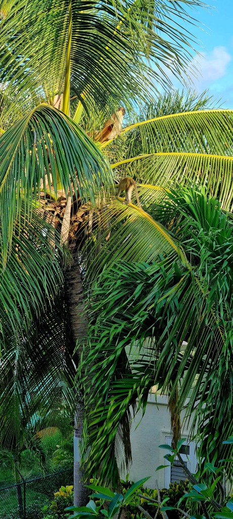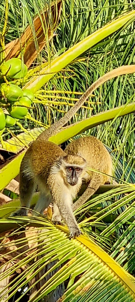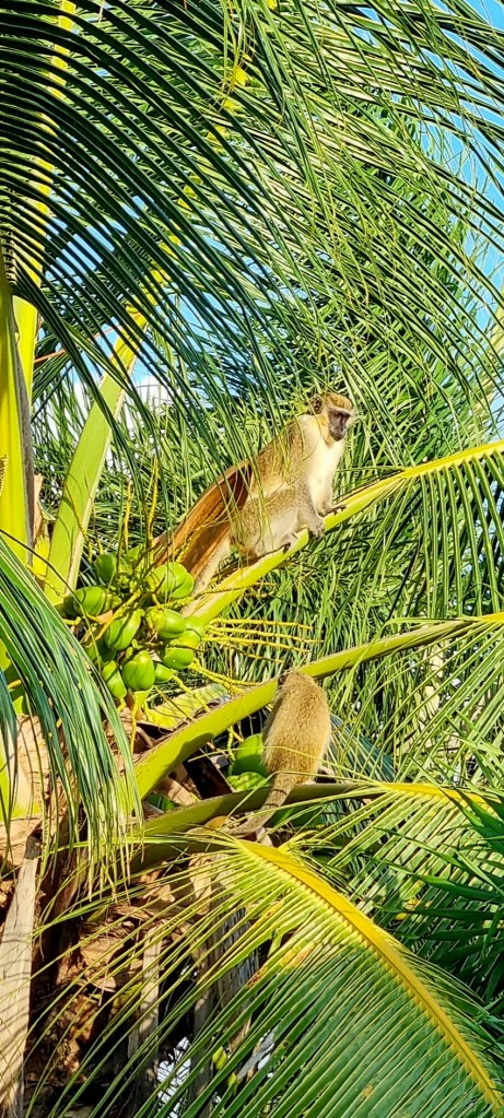 This morning, we were visited by the green monkeys. They were literally in the tree by the balcony.