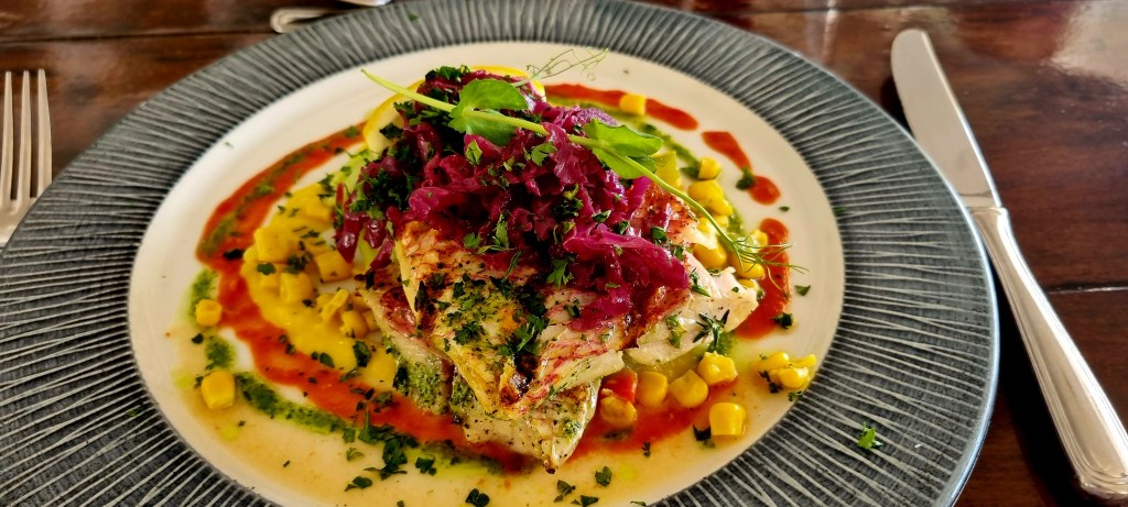I had an amazing rum sour, and catch of the day with breadfruit chips.