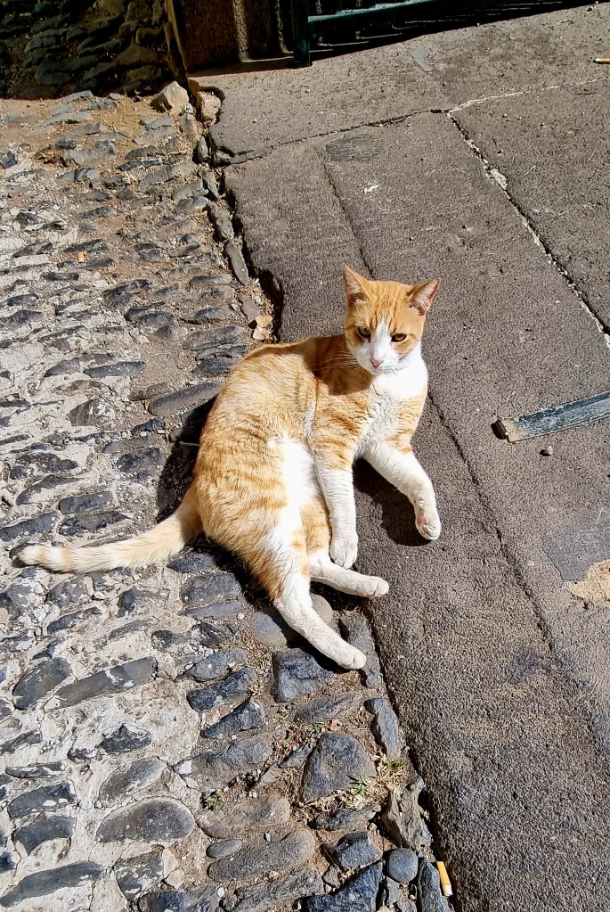 As the next bus wasn’t due to arrive for a couple of hours, we decided to take the cobbled and stony and sandy footpath down to the village. This path allegedly has 52 bends.