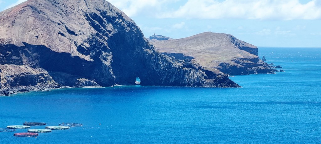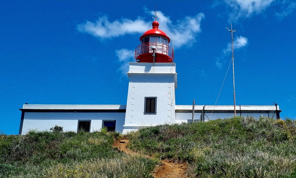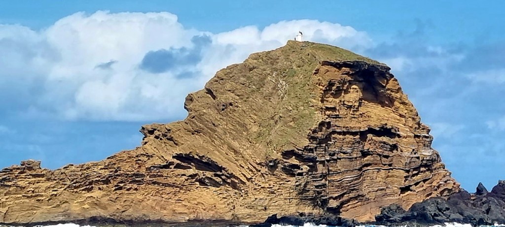 There is a small island right by Porto Moinz with a lighthouse at the top, 62m above sea level. The island is a lava dome that has partially fallen into the sea because of erosion.