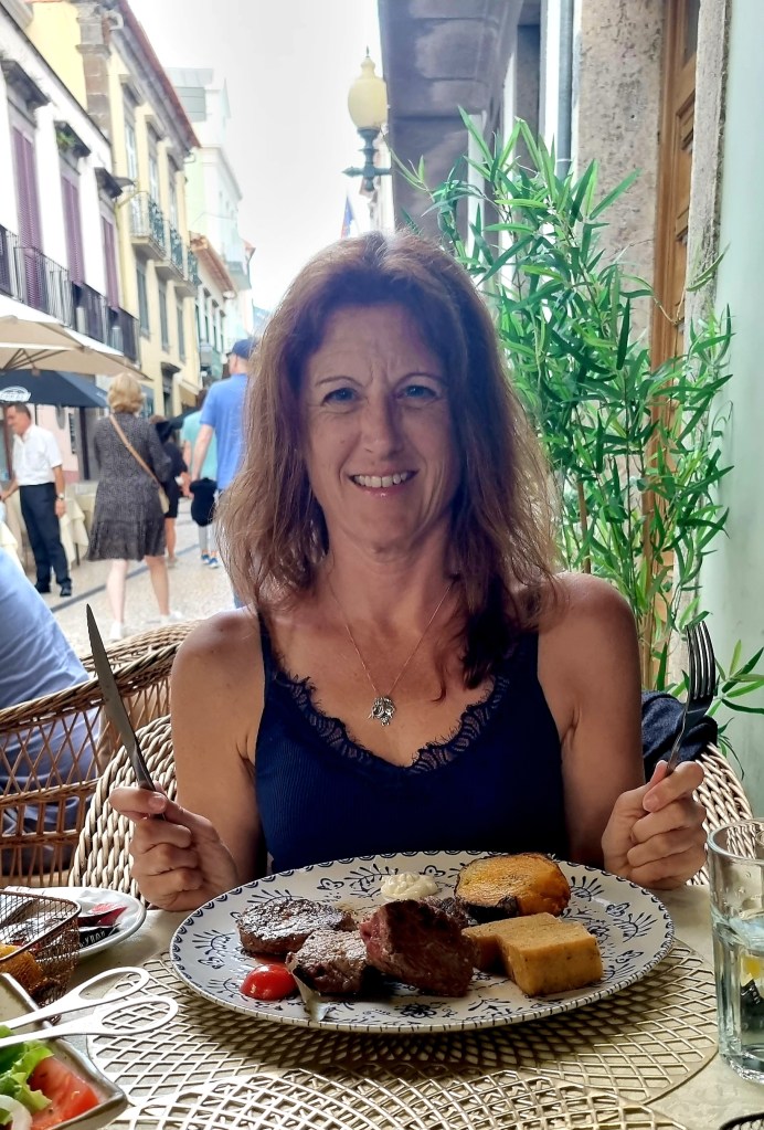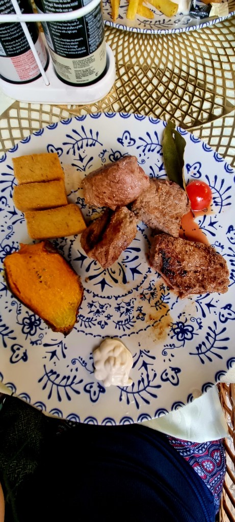 At the restaurant we had a very delicious Maderian meal of beef skewers.