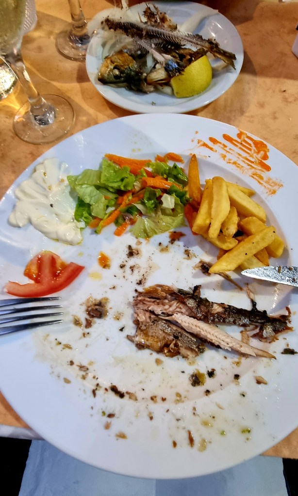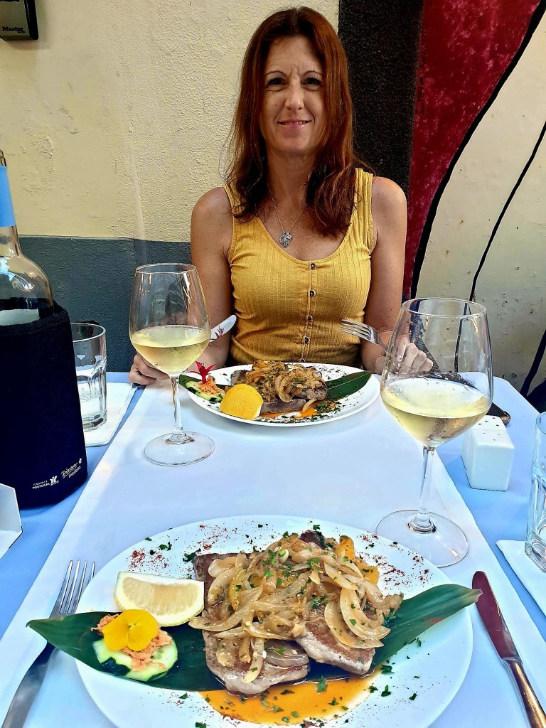 We had dinner at the Piano Bar on Santa Maria Street. We had sardines with Poncha and wine.