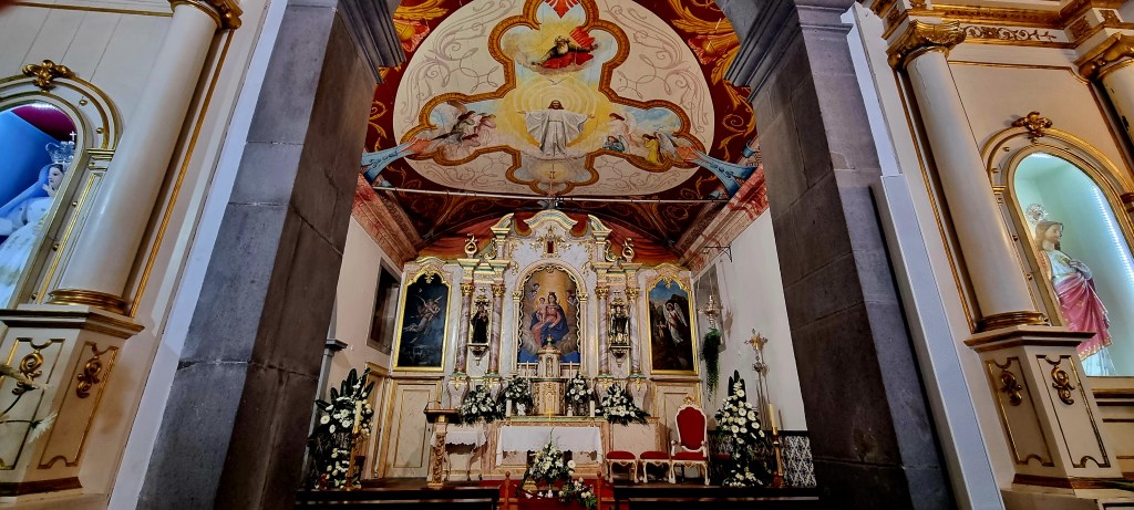 Our final stop of the day was Ponta Delgada to see the Church of the Good Lord (Bom Jesus). Legend has it that a fisherman was fishing in the sea and found a crucifix. Along with other fishermen, the man took the crucifix back to the village, but it mysteriously disappeared. Later, the fishermen found it in a cane field close to the sea. After this, the men of this village built a chapel for the Good Lord Jesus next to this cane field, which later became the present church. The church interior is in the Baroque style with a beautiful painted ceiling.