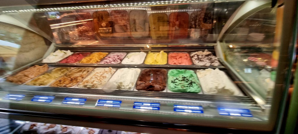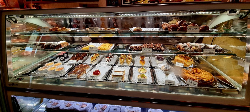 The cafe had some delicious looking pastries and ice cream, and we were serenaded by a man playing his violin.